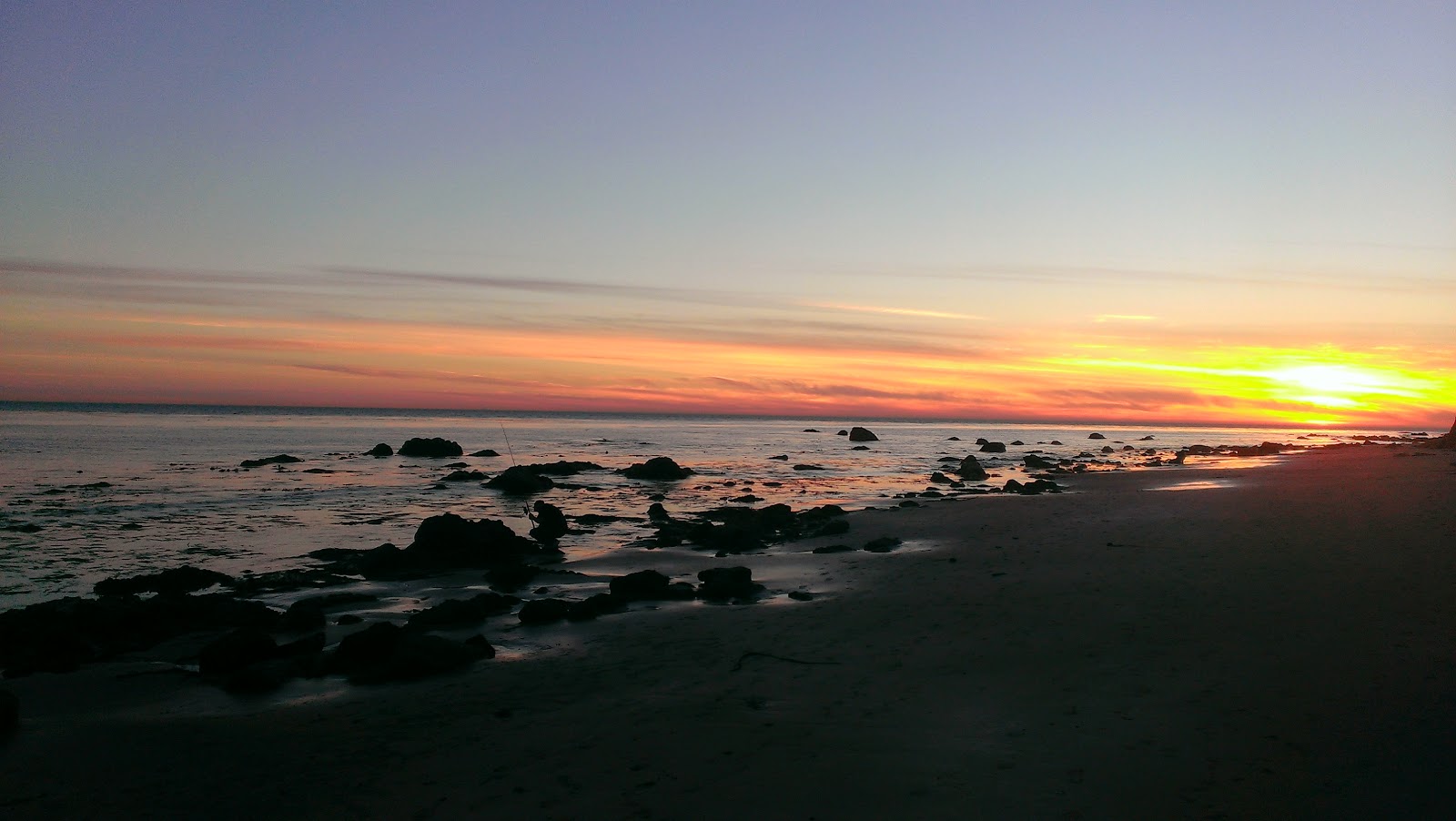 Brian started out the catching with a beautiful and fat 19"+ calico bass at 4:54 PM. I got in on the action with a nice fat 15-16" grass rockfish at 5:11 PM. We then had our first double hook up (we both hooked up and reeled in at the same time) at 5:22 PM, which was a 9" or so grass rockfish for me and a nice 12" or so grass rockfish for Brian. I then caught a 9"+ grass rockfish at 5:30 PM and Brian caught a nice 13" grassy at 5:38 PM. Double hook up #2 came at 5:45 PM in the form of a small grassy for Brian and a little baby lobster for me (which was of course released). I then caught a 12" or so cabazon at 6:00 PM and a 7" grass rockfish at 6:21 PM and a 12"+ grass rockfish at 6:34 PM and Brian closed out the catching with an 11" or so grass rockfish at 6:36 PM. We came intending to fish the full moon more, but we were tired by 7:00 and packed up and left.